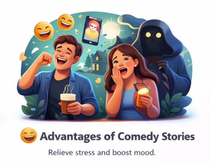 Comedy stories are one of the best ways to bring joy and relaxation into daily life. One of their biggest advantages is stress relief. Laughter triggers the release of endorphins, the body’s natural feel-good chemicals, which instantly improve mood and reduce anxiety. Reading comedy stories after a tiring day can refresh the mind and body.